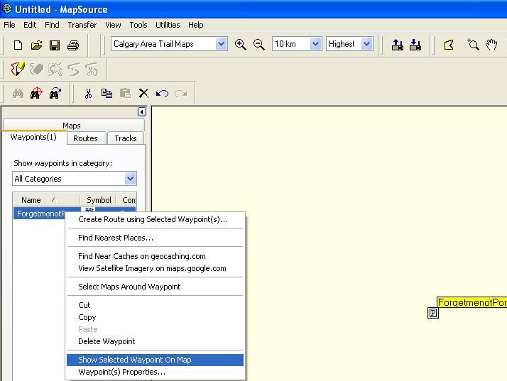 waypoint “Forgetmenotpond” and choose “Show Selected Waypoint