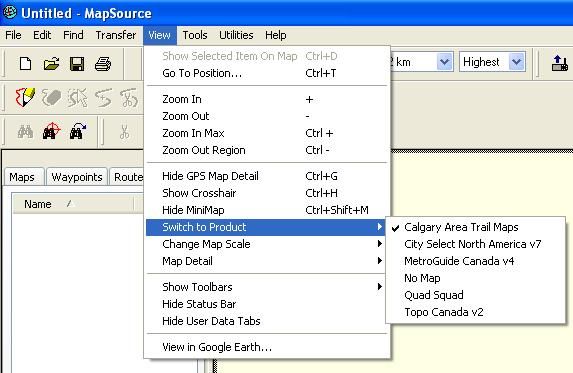 9) In Mapsource, I